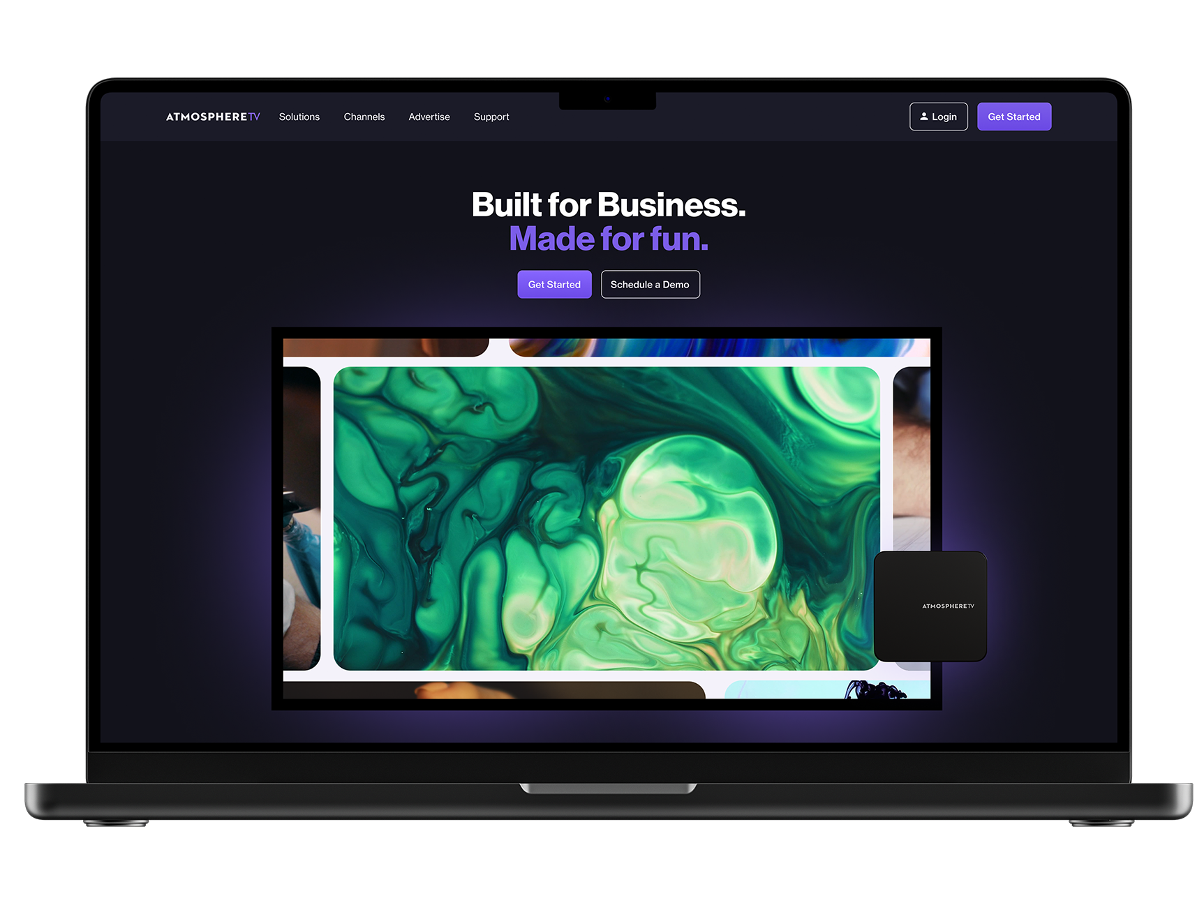 Overall look and feel for Atmosphere TV’s brand and motion identity. From the website’s landing page video to reusable marketing touchpoints, our team helped define how the #1 Streaming TV Service for Businesses shows up in motion.