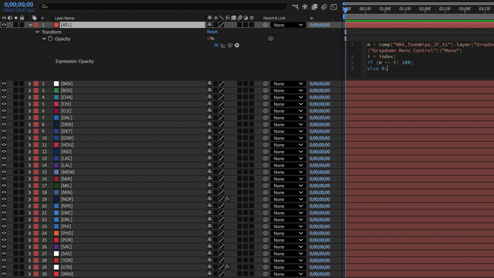 Built on procedural techniques and expressions, this system allows a single adjustment — such as changing layout, typeface or motion parameter — to automatically update across all 150+ team compositions. This approach ensures consistency while dramatically reducing production time for future updates and refinements.